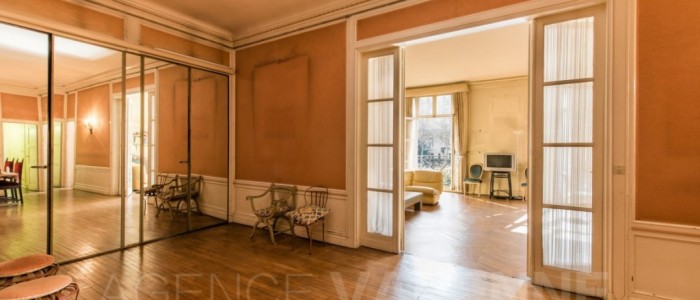 SQUARE LAMARTINE. Dans un très bel immeuble, un appartement d'angle de 250 m² avec plus de 3m60 de hauteur sous plafond et des volumes extraordinaires. Toutes les pièces donnent sur de la verdure et sont exposées sud et ouest. Appartement à refaire.